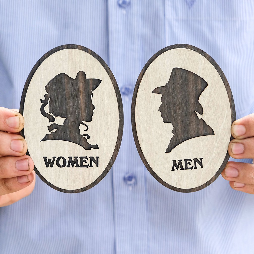 Bộ bảng gỗ toilet nam nữ rời có keo 2 mặt phía sau - Mẫu TL06