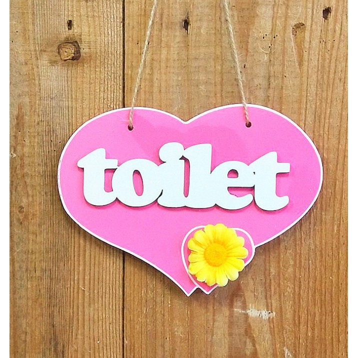 Bảng hiệu hình trái tim màu hồng WC, TOILET, MYROOM, OPEN CLOSE
