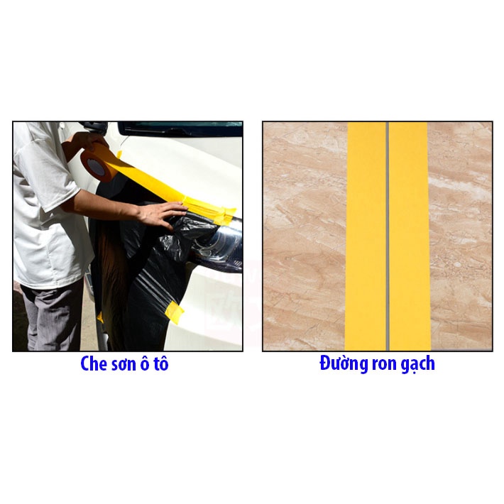Tên sản phẩm: Băng keo che sơn màu vàng 3cm x 50m dày 0.11mm DoconuCách dùng: