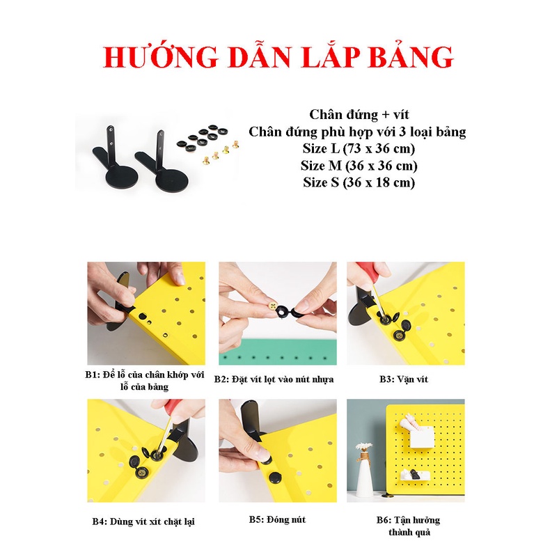✅ Tặng kèm tua vít + vít + nắp chụp thẩm mỹ để lắp đặt bảng Pegboard chân đứng