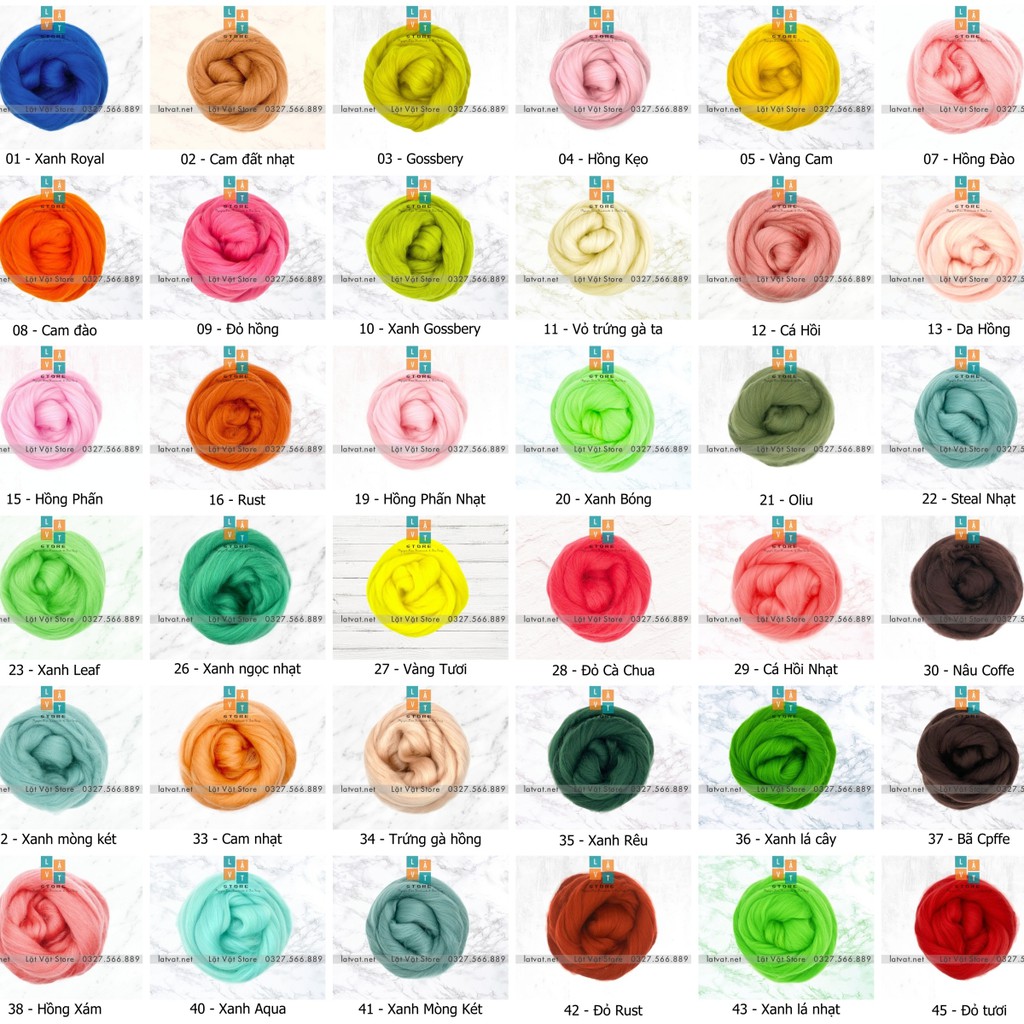 ☄️☄️BẢNG MÀU LEN CHỌC, với rất nhiều mã màu len. Len chọc được làm hoàn toàn từ lông cừu, các bạn có thể đốt thử để cảm nhận