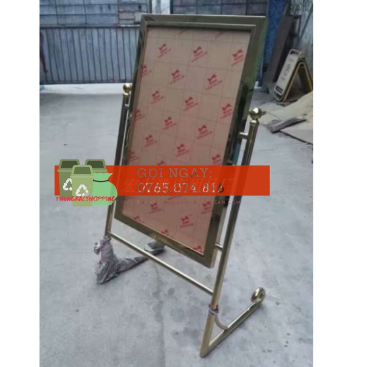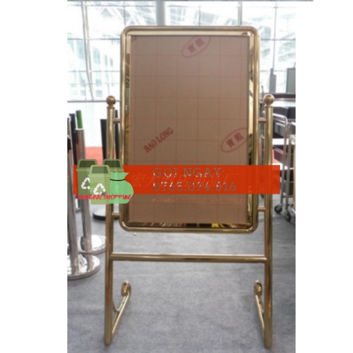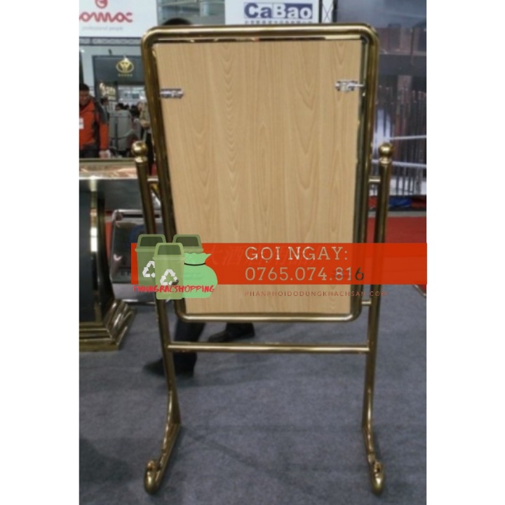- Bảng menu khách sạn được thiết kế đầy tinh tế và sang trọng, chân bảng uốn cong nhẹ rất bắt mắt, mặt bảng lớn chứa được nhiều nội dung, đằng sau bảng có 2 chốt thuận tiện đóng mở cho việc đặt banner, áp phích, thông báo, quảng cáo,…