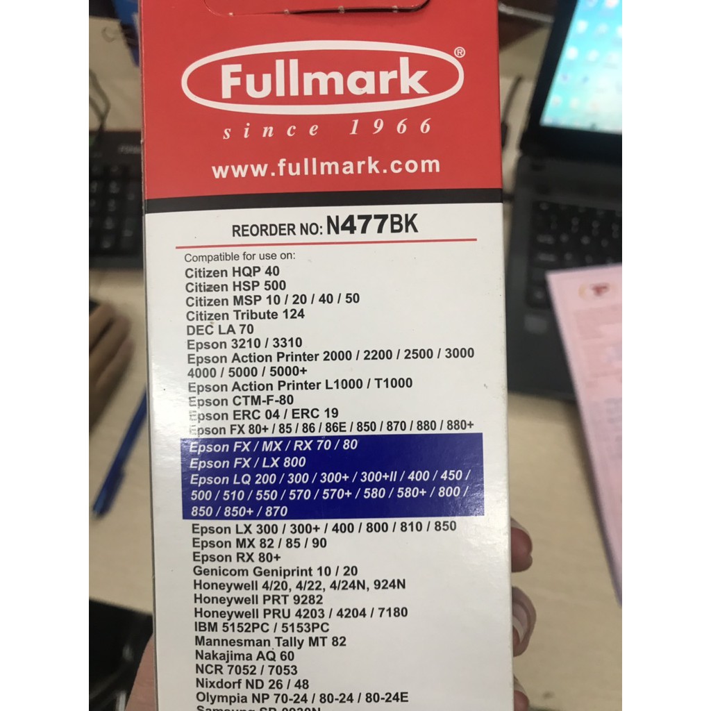 Máy tính & Laptop > Máy In & Máy Scan > Khác || Băng mực EPSON LQ 300,500,550,570,570+, 580, 800,850,850+,870 Fullmark chính hãng cho máy in kimCòn hàng