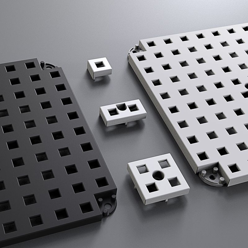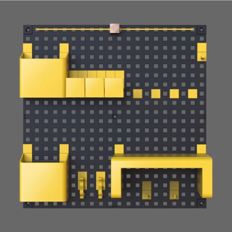 - Tấm bảng Pegboard là bộ phận cơ bản để tạo nên một hệ bảng pegboard treo tường hoàn chỉnh. Nhờ vào thiết kế đặc biệt mà các chi tiết giá, kệ, khay có thể kết nối chắc chắn trên đó.