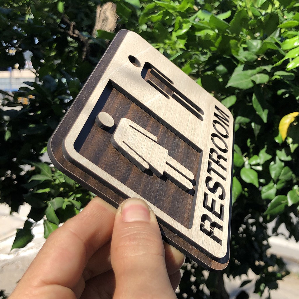 Bảng gỗ trang trí Restroom được TBIG gia công cắt khắc laser trên chất liệu gỗ Gỗ MDF phủ Venner với độ sắc nét. Mẫu bảng toilet TL02 được nhiều khách lựa nhọn nhờ thiết kế tinh tế, quy cách lắp đặt đơn giản nhơ phía sau bảng có sẵn lớp kep 2 mặt.ẢNH ĐƯỢC TBIG TỰ CHỤP NÊN BẢO ĐẢM GIAO HÀNG GIỐNG 100% NHƯ QUẢNG CÁO