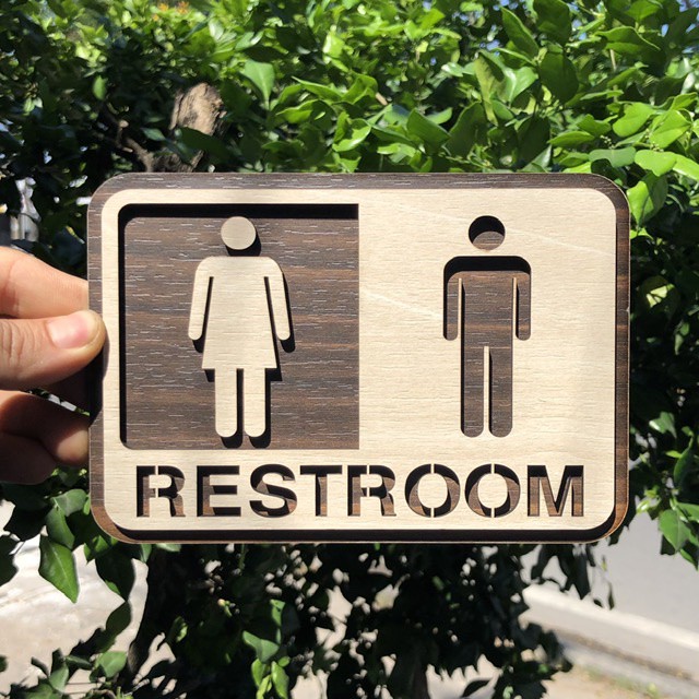 Nhà cửa & Đời sống > Đồ dùng phòng tắm > Bồn cầu, ghế và nắp bồn cầu || Bảng restroom (toilet, WC) bằng gỗ MDF phủ verneer / trang trí homestay cực chấtCòn hàng