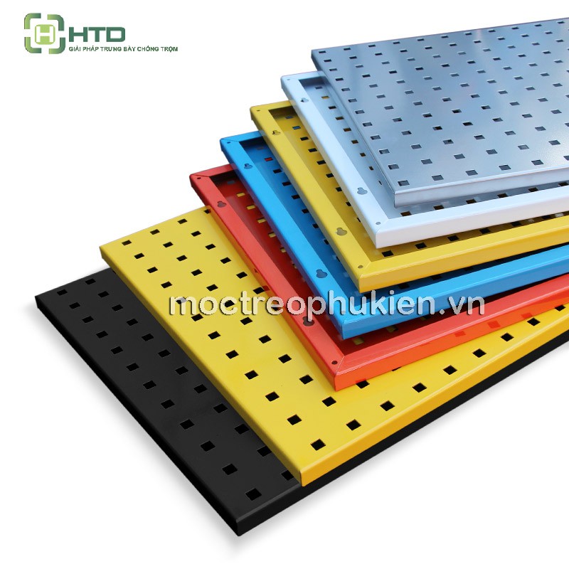 Thiết kế tương tự như mẫu HTD-02 nhưng phần lỗ để gài móc được thiết kế dạng ô vuông giúp bạn kết hợp với các móc treo dễ dàng hơn.