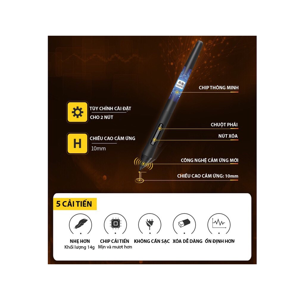 - Mức lực nhấn cảm ứng lên đến 8192 mức, cho phép bạn chỉnh sửa, điều hướng và sáng tạo với nguyên bộ cọ và bút, cảm giác như dùng một cây bút thực vậy.