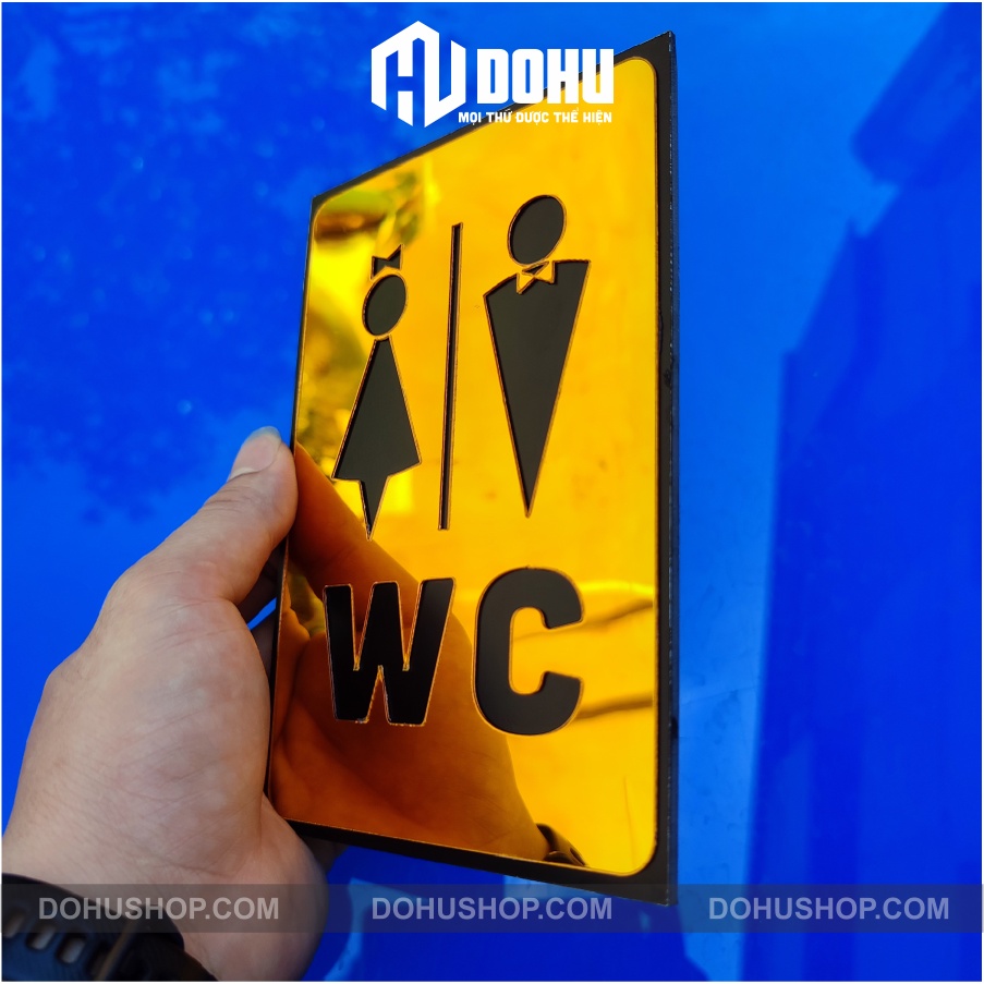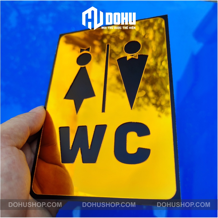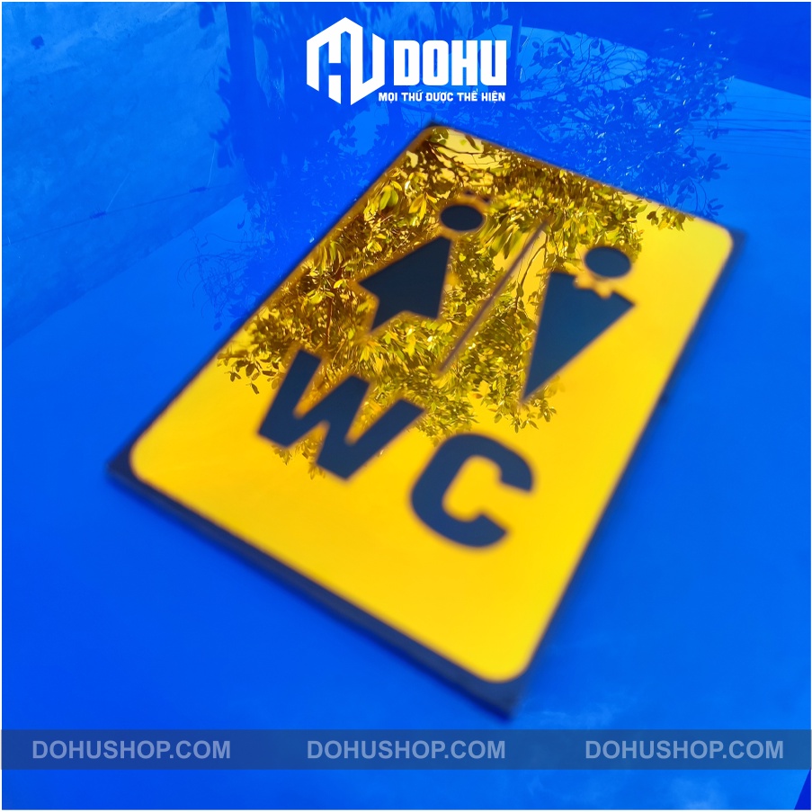 Nhà cửa & Đời sống > Đồ dùng phòng tắm > Khác || Bảng WC Gắn Nhà Vệ Sinh Bằng Gương Vàng Cắt Laser Chìm 3D Sang Trọng, Hiện Đại (Có sẵn keo 2 mặt dán tường tiện dụng)Còn hàng