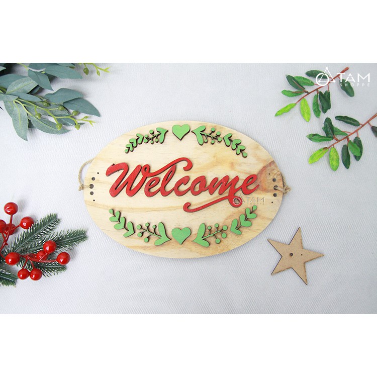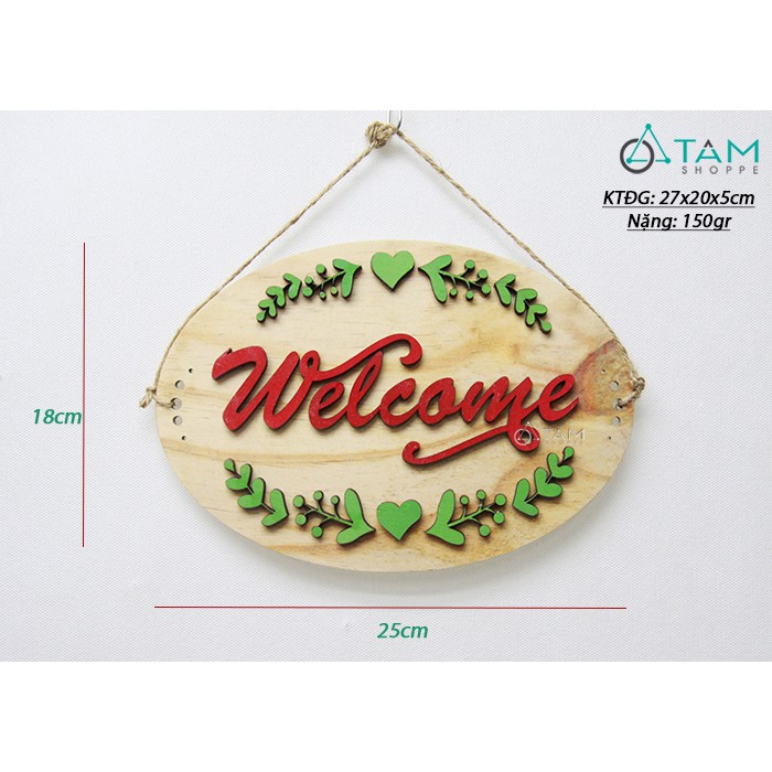 Nhà cửa & Đời sống > Trang trí nhà cửa > Rèm cửa, màn che || Bảng Welcome treo cửa chữ nổi họa tiết lá xanh 2 mặt W-BTC-W01Còn hàng