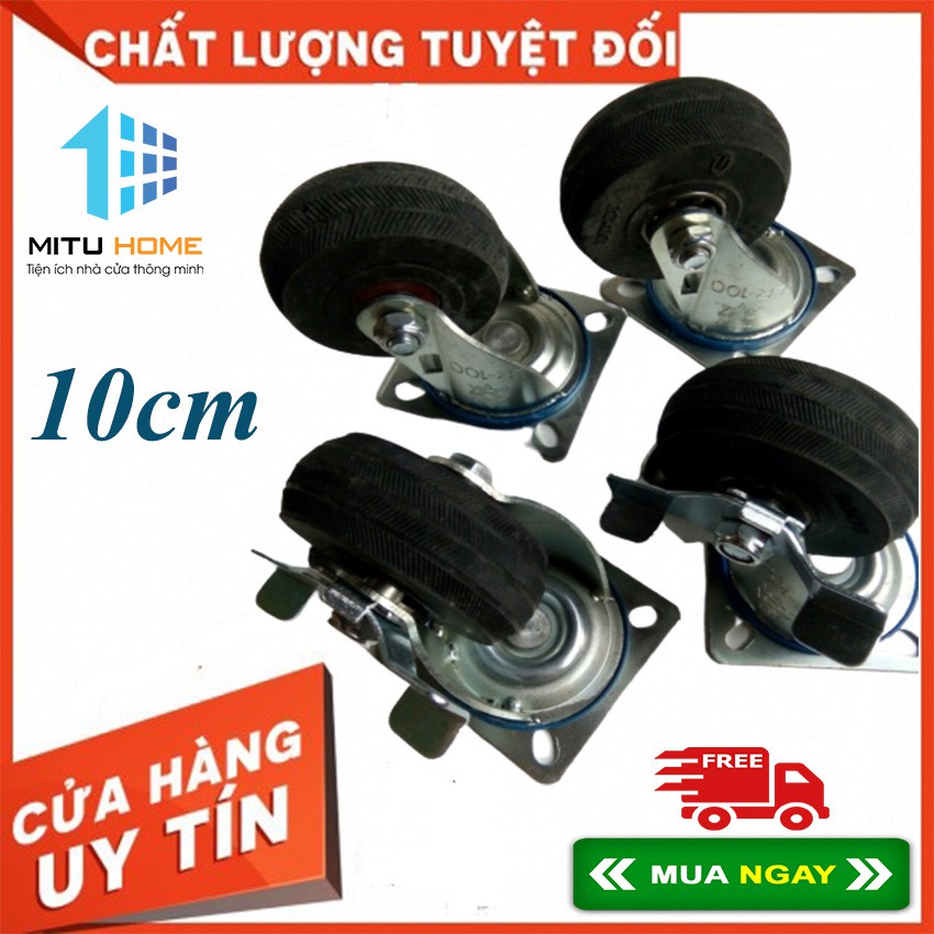 Nhà cửa & Đời sống > Dụng cụ & Thiết bị tiện ích > Xe đẩy || [ BÁNH CAO SU ] Bộ 4 bánh xe đẩy Cao su 100x38mm xoay 360 độ - MITUHOME, Chịu lực 200kg, có khóa chống trơn trượtCòn hàng