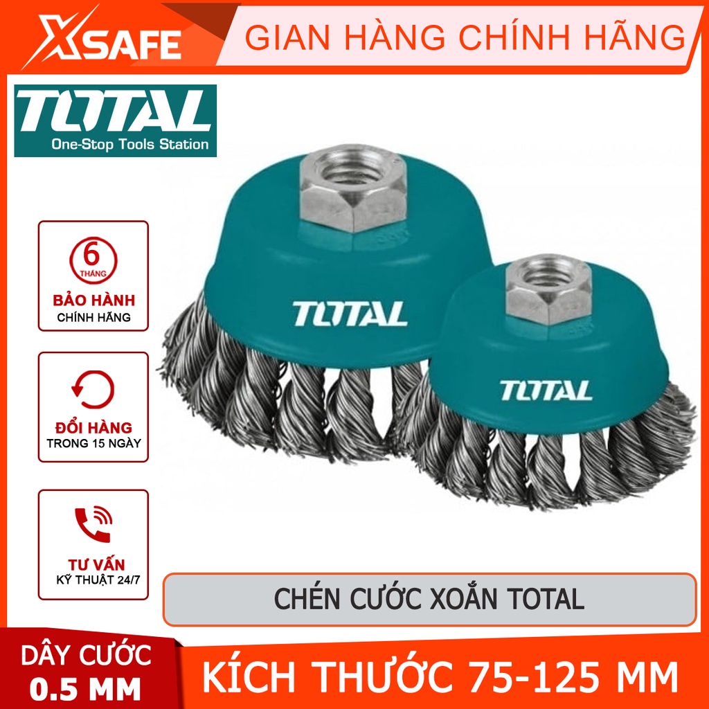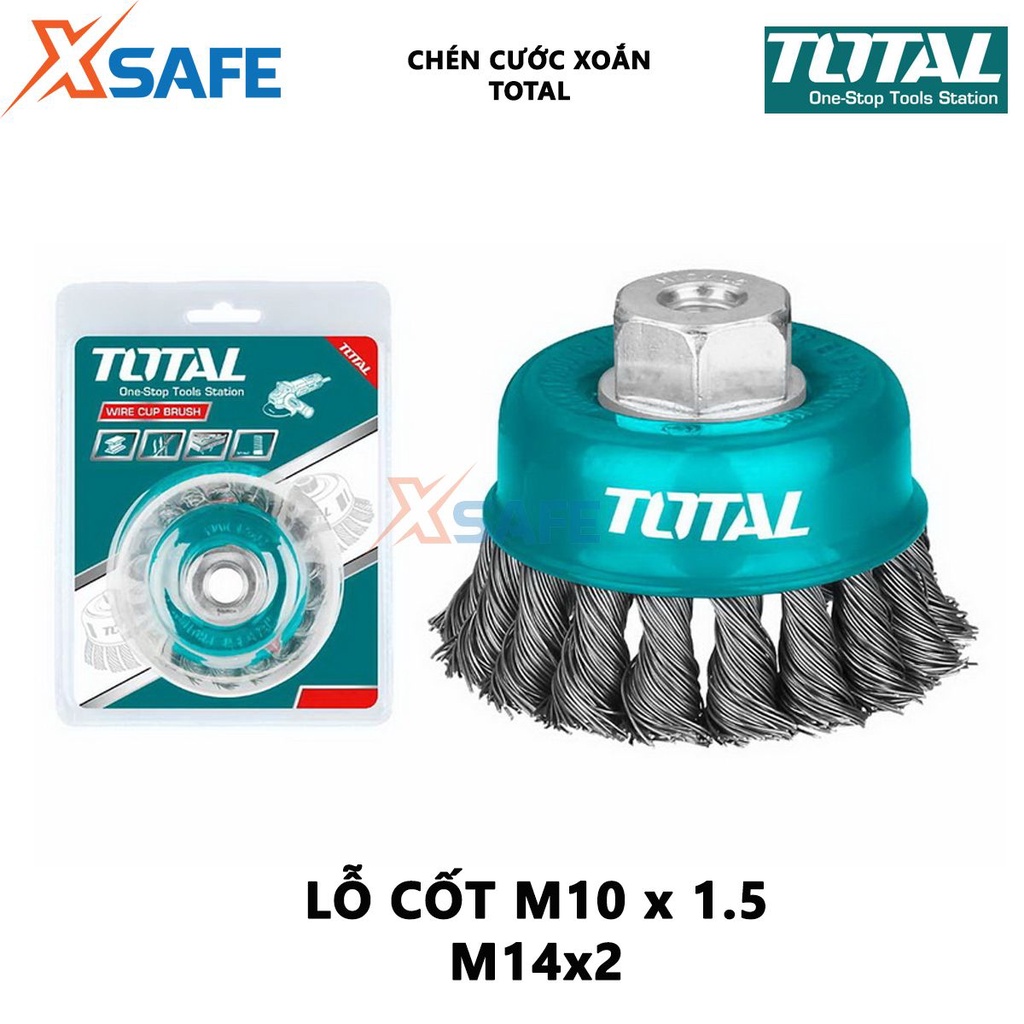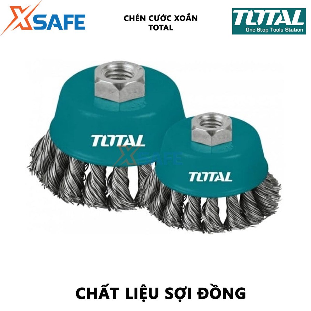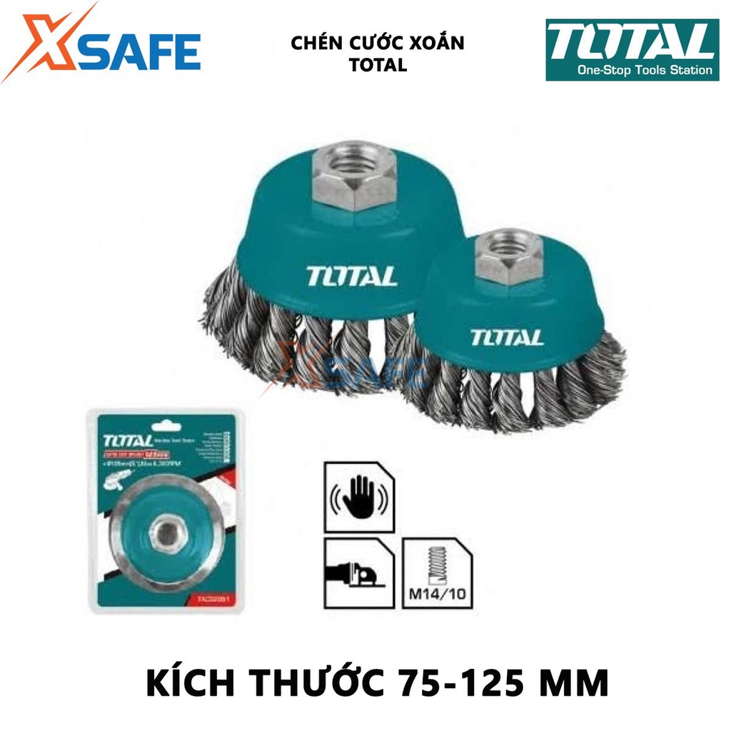 Nhà cửa & Đời sống > Dụng cụ & Thiết bị tiện ích > Dụng cụ > Giấy nhám, máy chà nhám và phụ kiện || Bánh cước thép xoắn TOTAL Chén cước thau xoắn kích thước 75-125mm, đường kính dây cước 0.5mm, cốt M10 - [XSAFE]Còn hàng