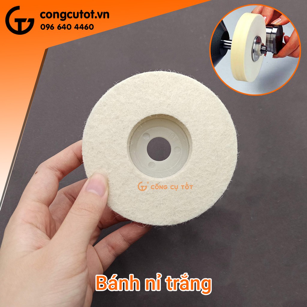 Nhà cửa & Đời sống > Dụng cụ & Thiết bị tiện ích > Dụng cụ > Giấy nhám, máy chà nhám và phụ kiện || Bánh nỉ trắng đánh bóng inox Φ100Còn hàng