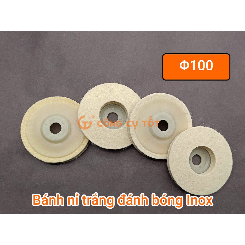 Bánh nỉ trắng đánh bóng inox Φ100
