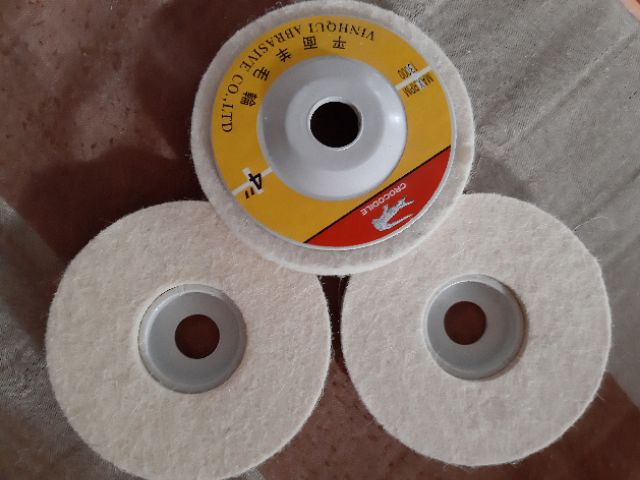 Nhà cửa & Đời sống > Dụng cụ & Thiết bị tiện ích > Dụng cụ > Giấy nhám, máy chà nhám và phụ kiện || Bánh nỉ trắng đánh bóng inox 100mmCòn hàng