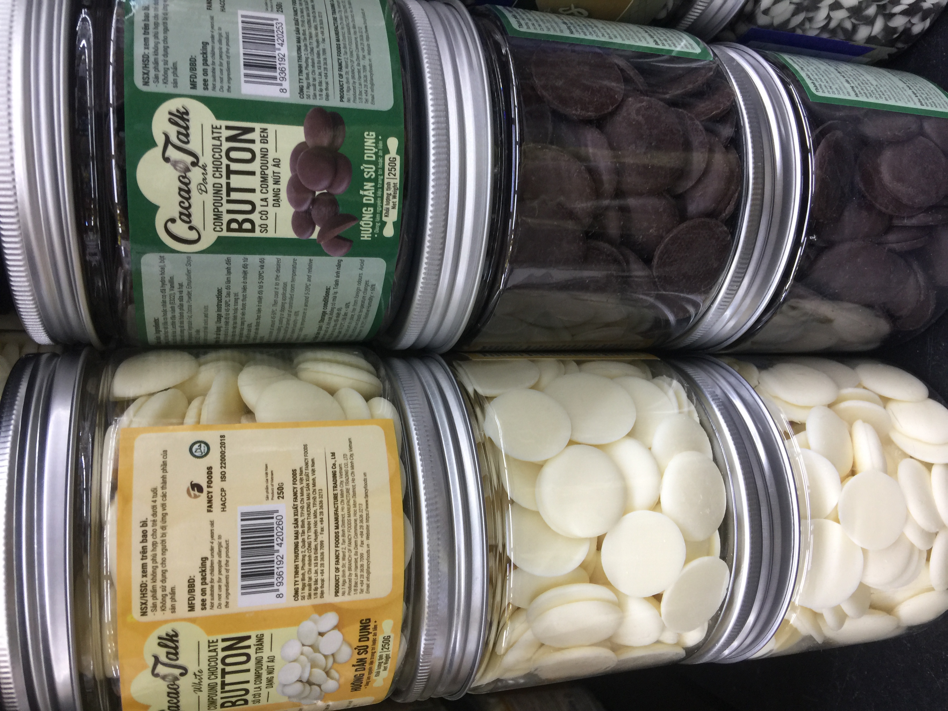 sản phẩm socola đen và trắng, dạng hạt nút và chipShop đóng gói hủ 300gr và 700gr...- Giao hàng toàn quốc