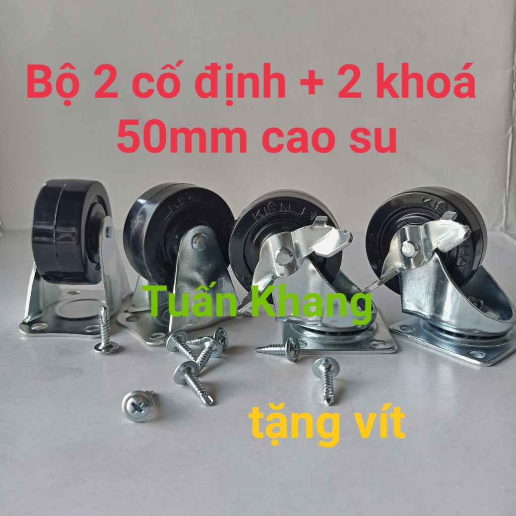 Bộ bánh xe 50mm cao su ( 2 khóa + 2 cố định )