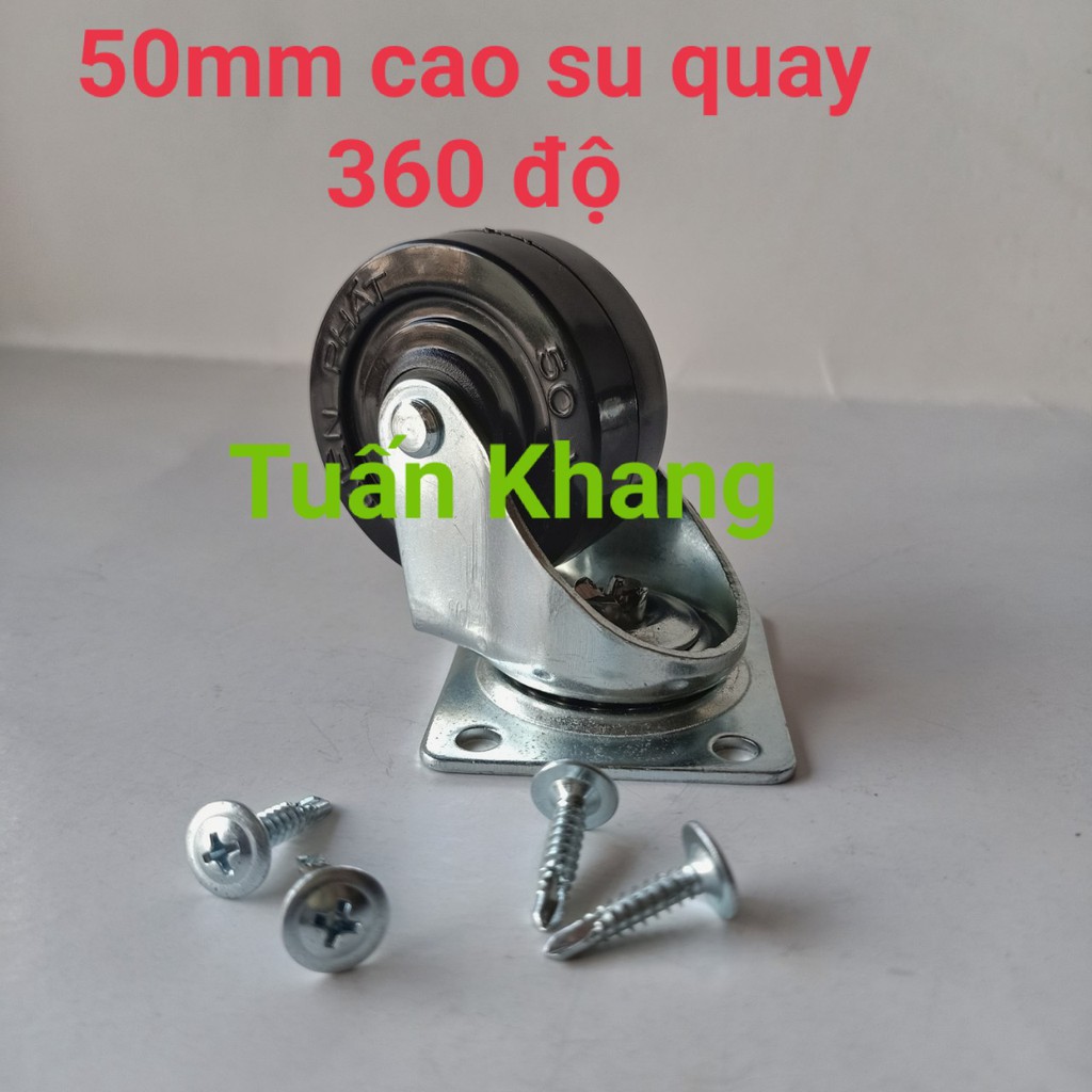 Bộ Bánh xe kích thước 50mm 2 xoay 360 độ + 2 khóabánh được làm bằng cao su , đẩy rất êm , ko tạo ra tiếng ồn