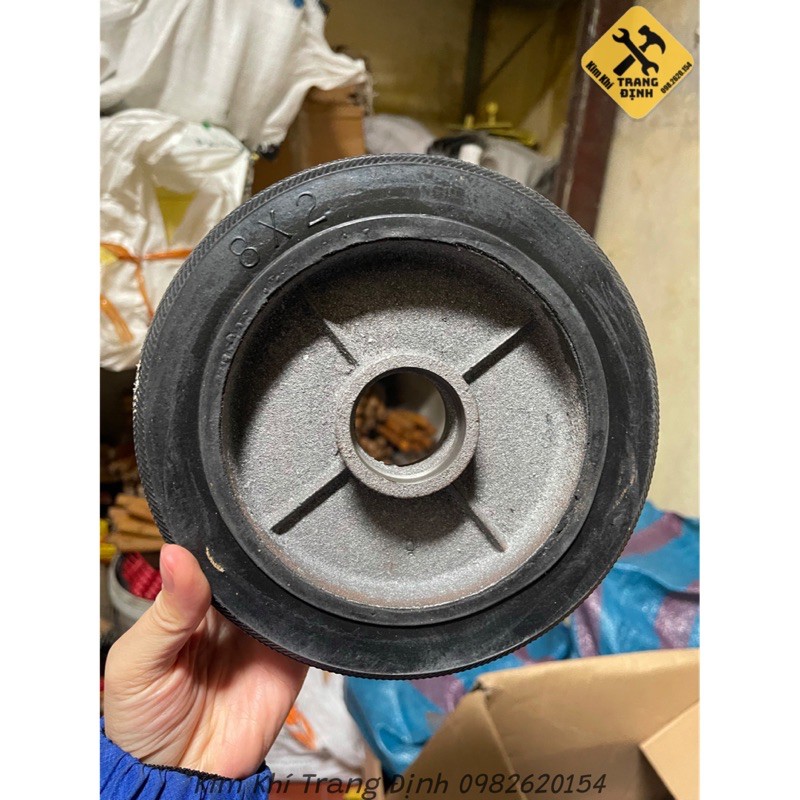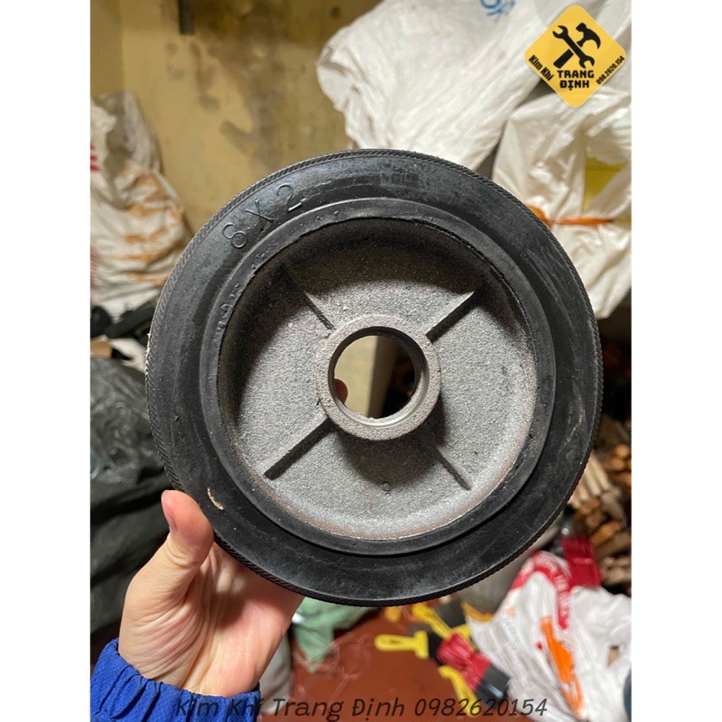 Bánh xe 20cm dùng để thay thế hoặc lắp mới bộ xe kéo, xe đẩy hàng.Bánh xe cao su đẩy hàng đường kính 20cm lõi sắt