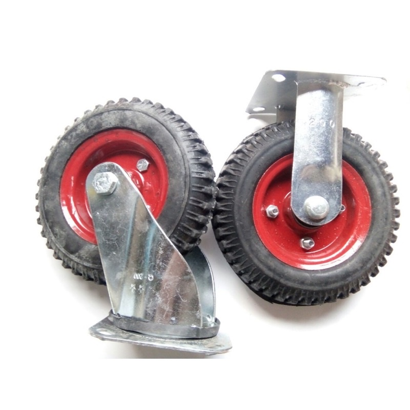 Bánh xe cao su lắp xe đẩy hàng loại 20cm có trục đứng cố định và trục xoay 360 độBánh xe 20cm dùng để thay thế hoặc lắp mới bộ xe kéo, xe đẩy hàng.