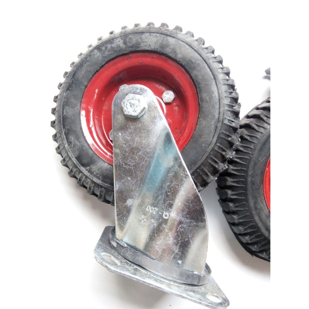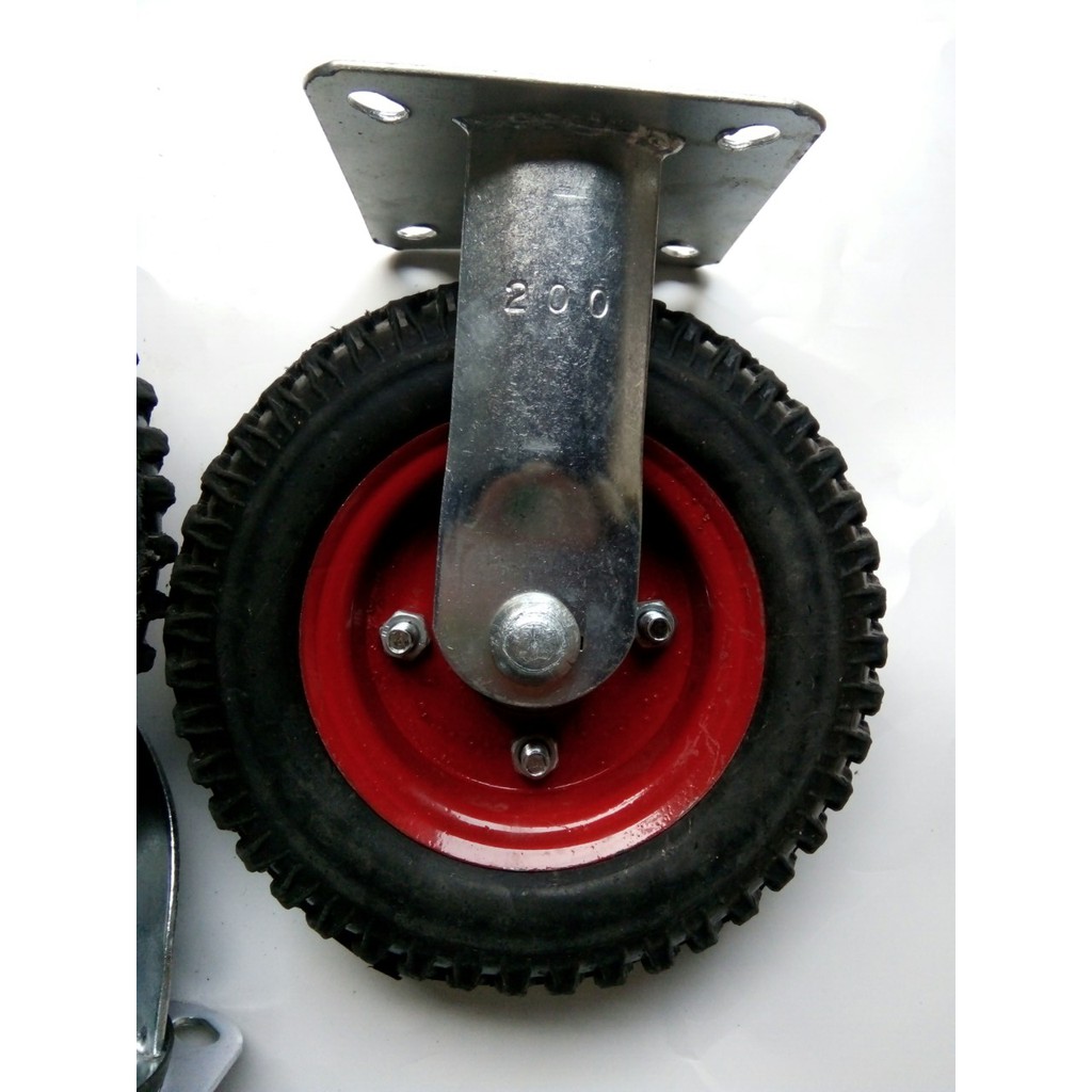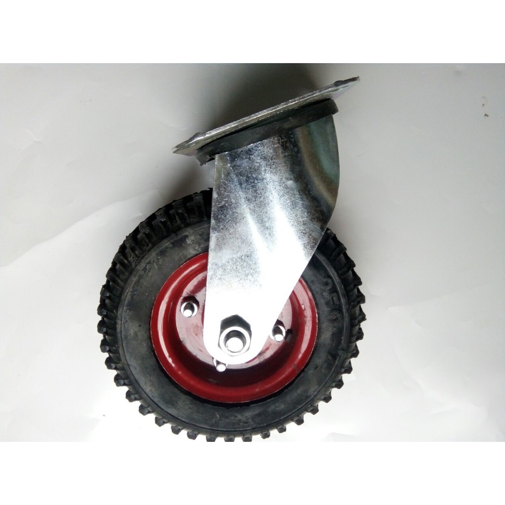 Bánh xe cao su lắp xe đẩy hàng loại 20cm có trục đứng cố định và trục xoay 360 độBánh xe 20cm dùng để thay thế hoặc lắp mới bộ xe kéo, xe đẩy hàng.