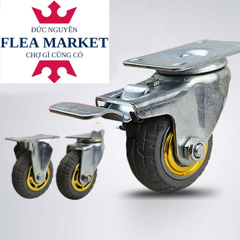 Bánh xe đẩy chịu lực xoay 360 có khóa hãm - ứng dụng để làm xe đẩy hàng, kho hàng, inox - 1 bánh cao cấp