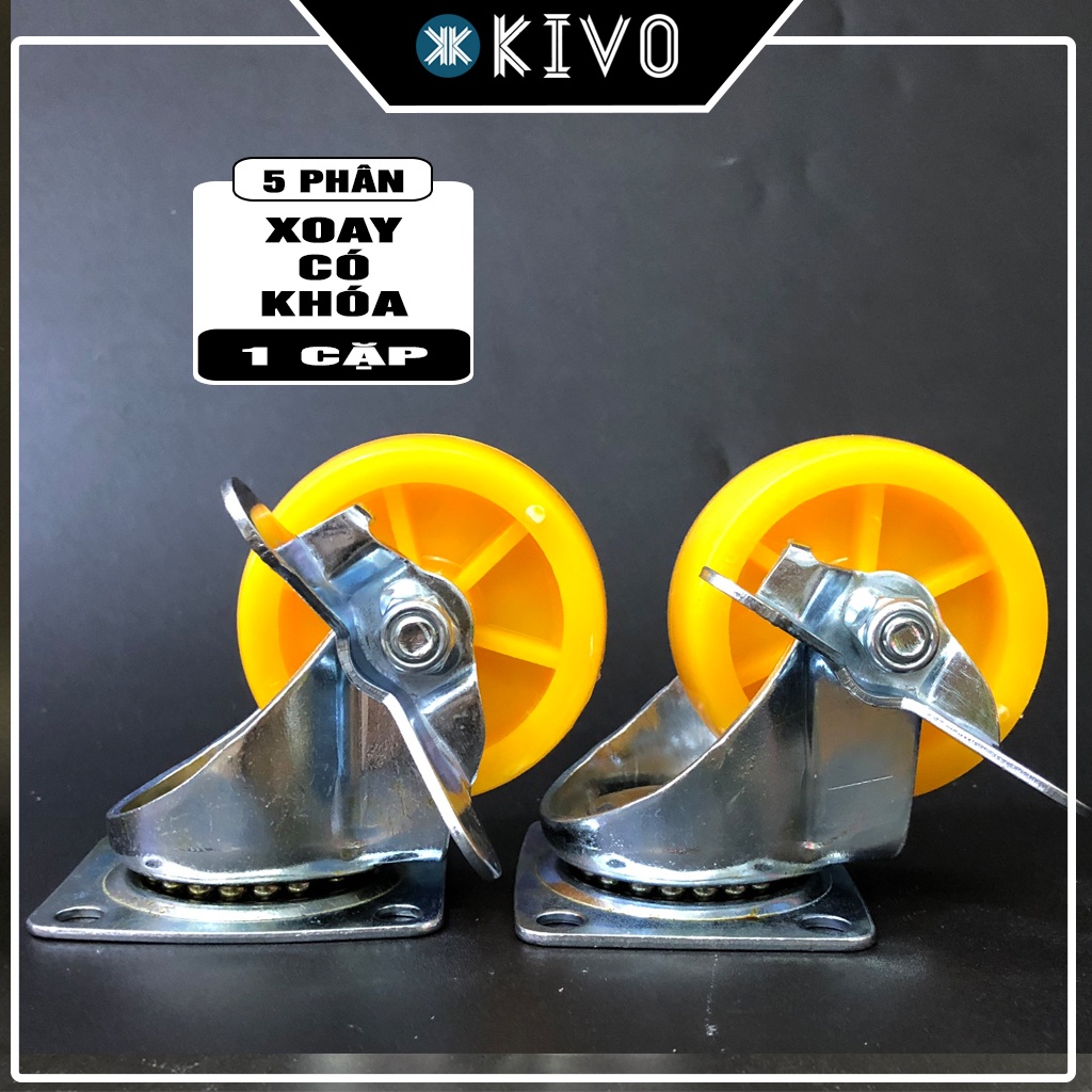 Bánh Xe Đẩy Hàng - COMBO 2 Bánh Nhựa SK CAO CẤP Có Khóa Chịu Lực Tốt NHIỀU SIZE 3P 5P 7P - Bánh Xe Ghế Xoay - Kivo