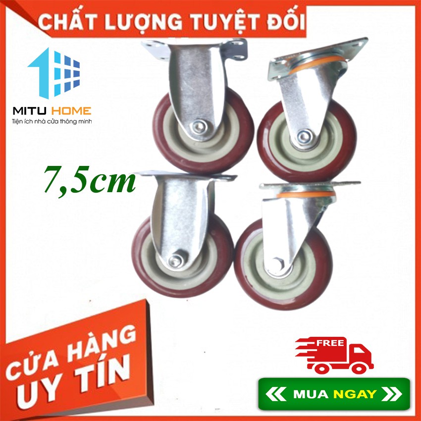 Bánh xe đẩy hàng xoay 360 độ 7,5cm - MITUHOME- Màu mận chín bộ 2 bánh cố định 2 bánh xoay thay thế xe đẩyPhân loại :