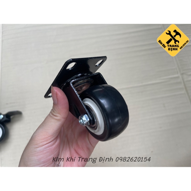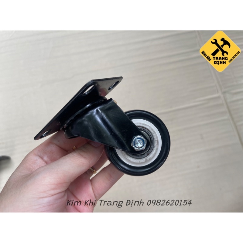 Giới thiệu Bánh xe đẩy mặt đế xoay càng sắt tải trọng 30kg lốp nhựa PU đen rộng 20mm Φ40mm