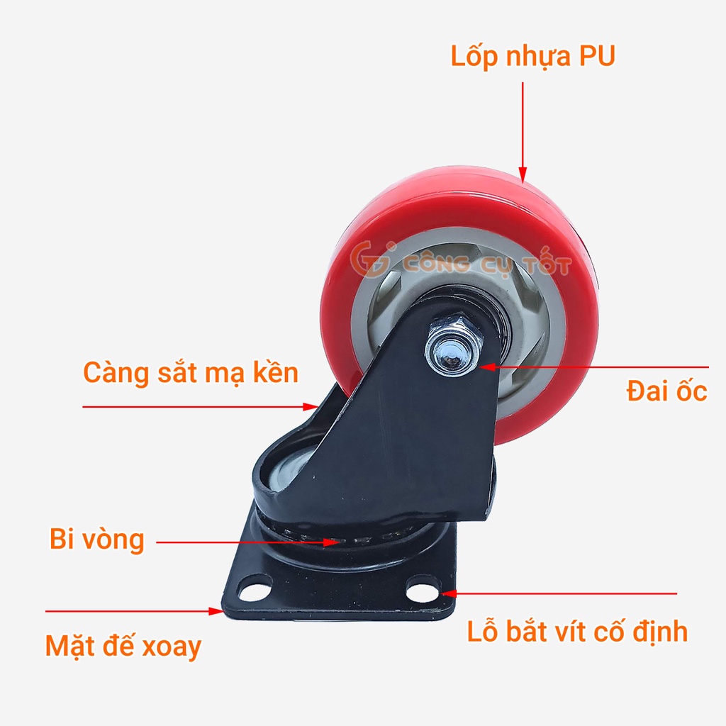 Giới thiệu Bánh xe đẩy mặt đế xoay càng sắt tải trọng 50kg lốp cam trắng rộng 30mm Φ75mm