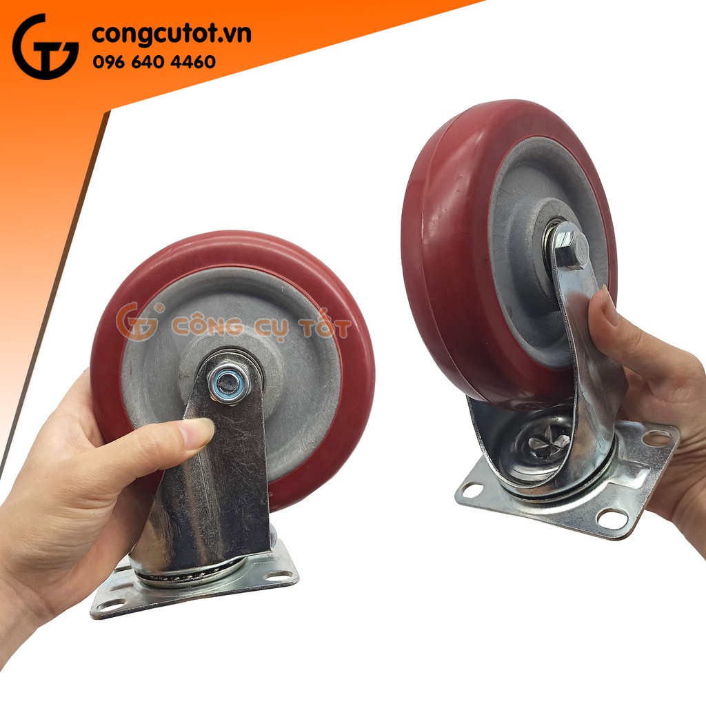 Nhà cửa & Đời sống > Dụng cụ & Thiết bị tiện ích > Xe đẩy || Bánh xe đẩy mặt đế xoay càng sắt mạ kền tải trọng 65kg lốp nhựa TPR đỏ mận rộng 32mm Φ120mmCòn hàng