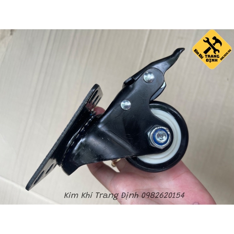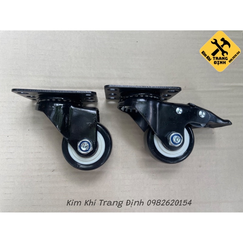 Giới thiệu Bánh xe đẩy mặt đế xoay càng sắt tải trọng 45kg lốp nhựa PU đen rộng 32mm Φ60mm