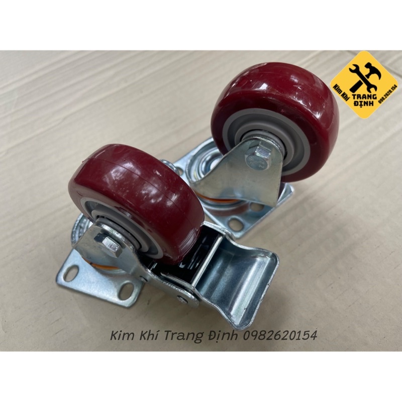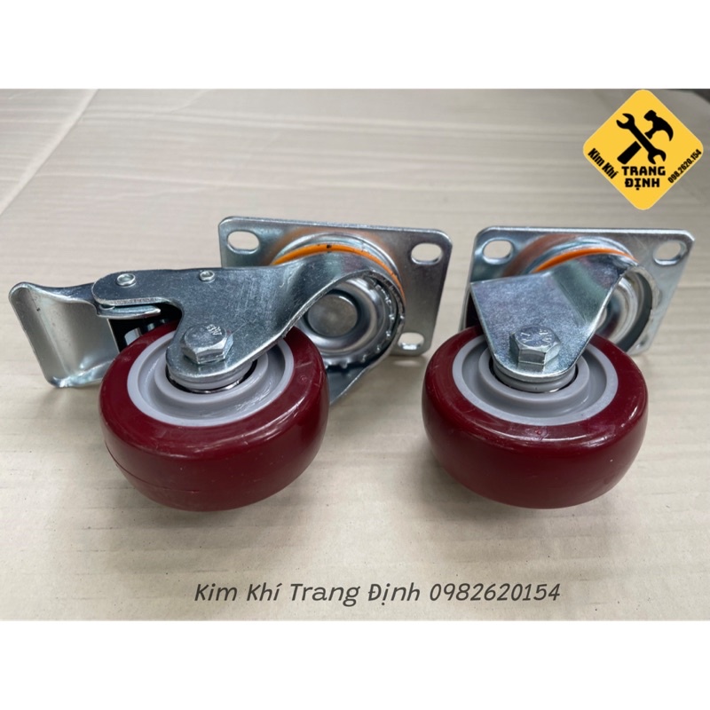 Nhà cửa & Đời sống > Dụng cụ & Thiết bị tiện ích > Xe đẩy || Bánh xe đẩy mặt đế xoay càng sắt mạ kền tải trọng 50kg lốp nhựa TPR đỏ mận rộng 32mm đường kính 7,5cmCòn hàng