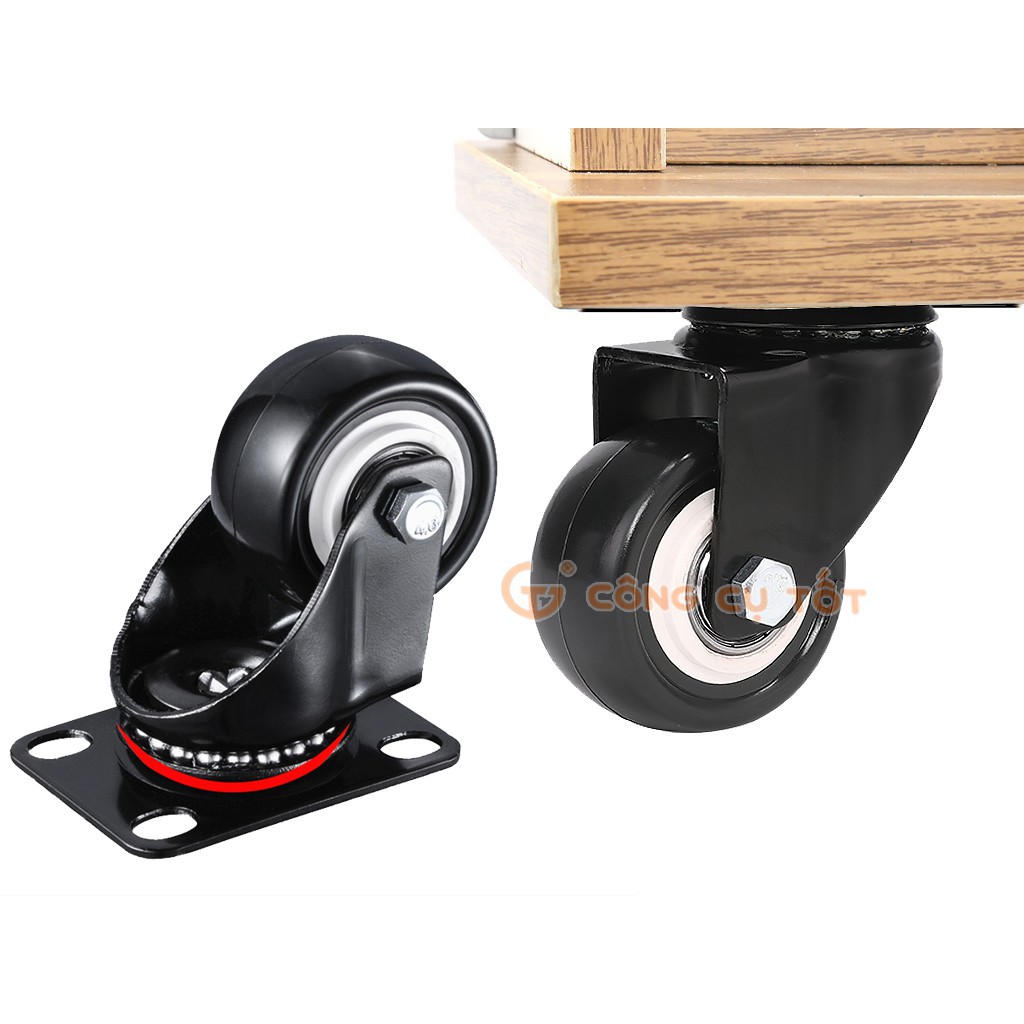 Giới thiệu Bánh xe đẩy mặt đế xoay càng sắt tải trọng 50kg lốp nhựa PU đen rộng 32mm Φ75mm