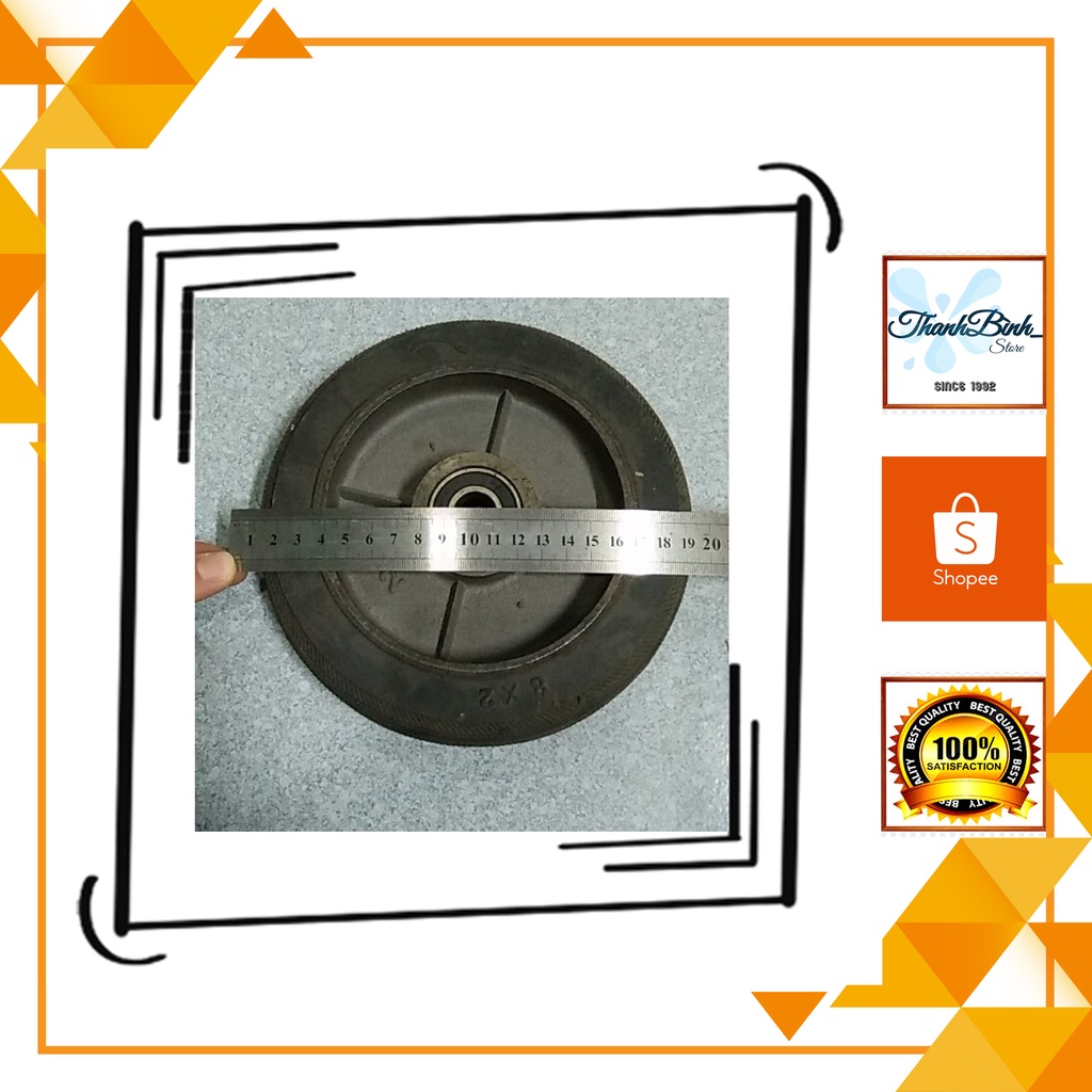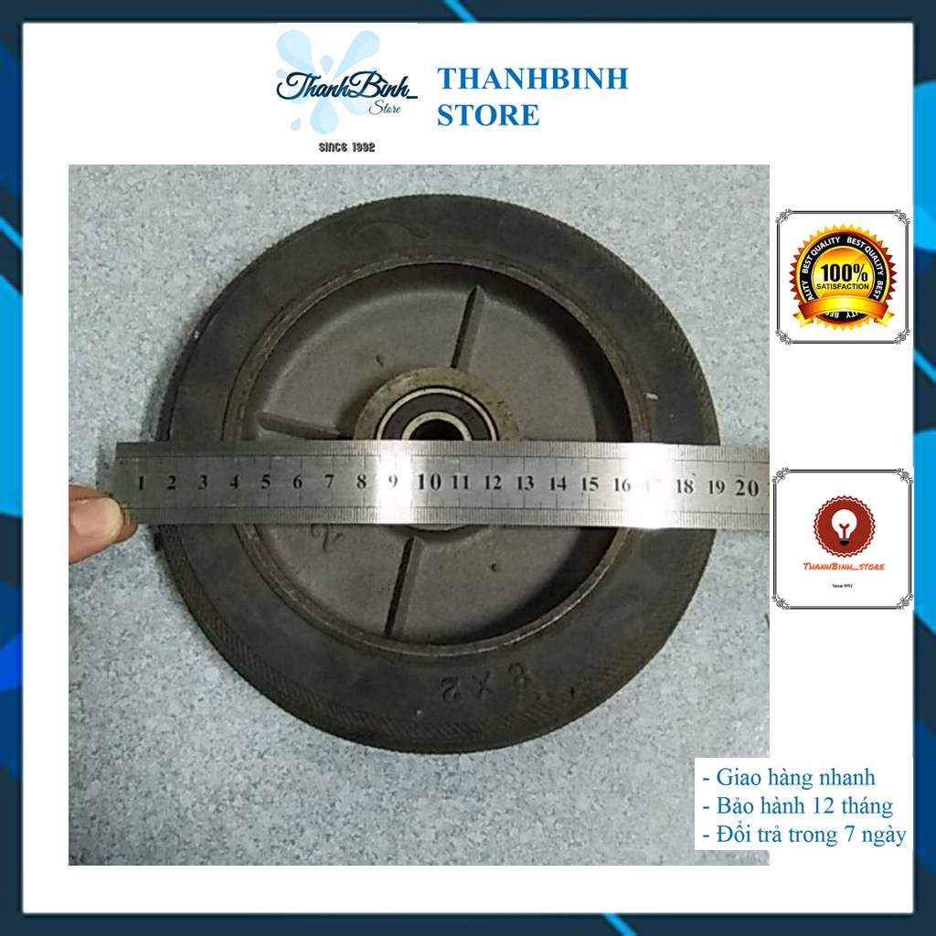 - Bánh xe 20cm dùng để thay thế hoặc lắp mới bộ xe kéo, xe đẩy hàng.