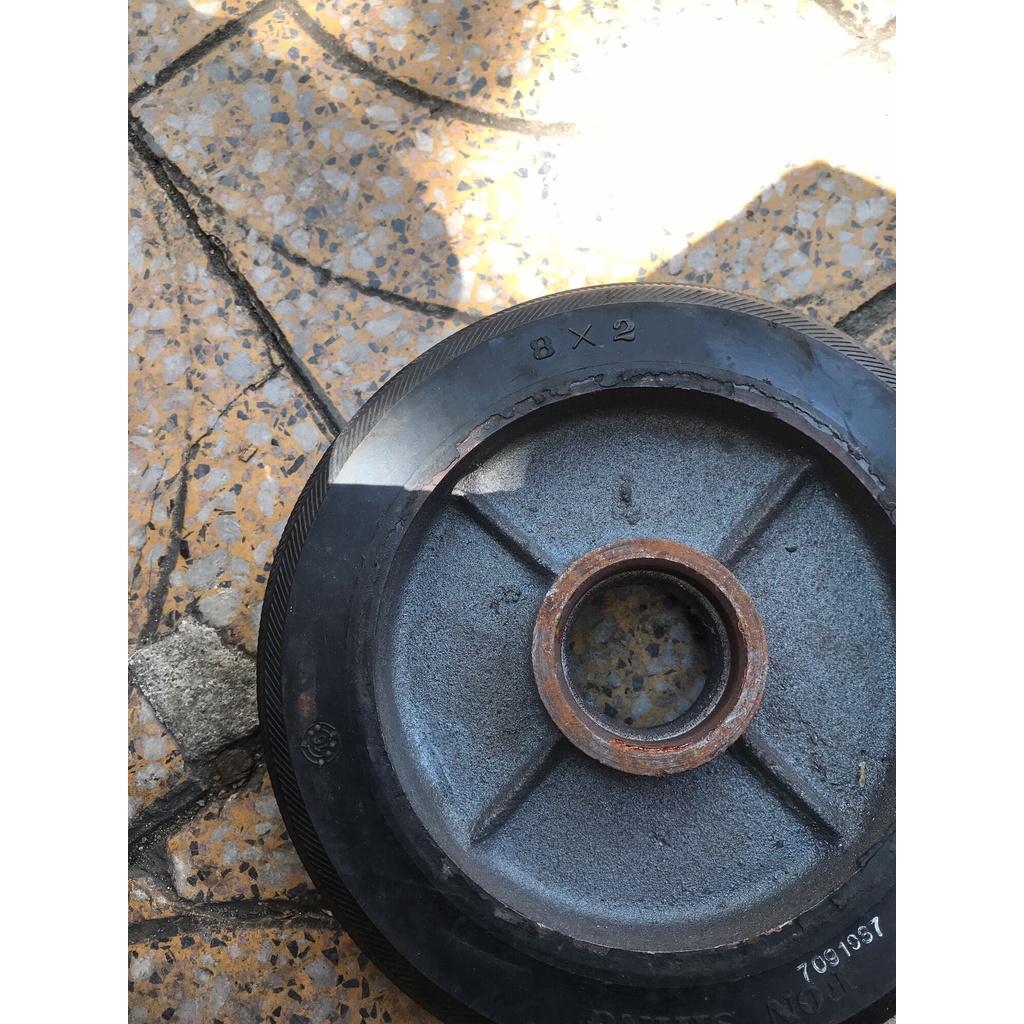 Bánh xe 20cm dùng để thay thế hoặc lắp mới bộ xe kéo, xe đẩy hàng.Bánh xe cao su đẩy hàng đường kính 20cm lõi sắt