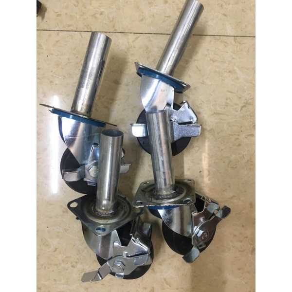 Bánh xe có khóa chống trơn trượt trên mọi địa hình, ngoài ra bánh xe còn được hàn thêm ống giáo gắn liền bánh xe tổngchiều dài 30cm