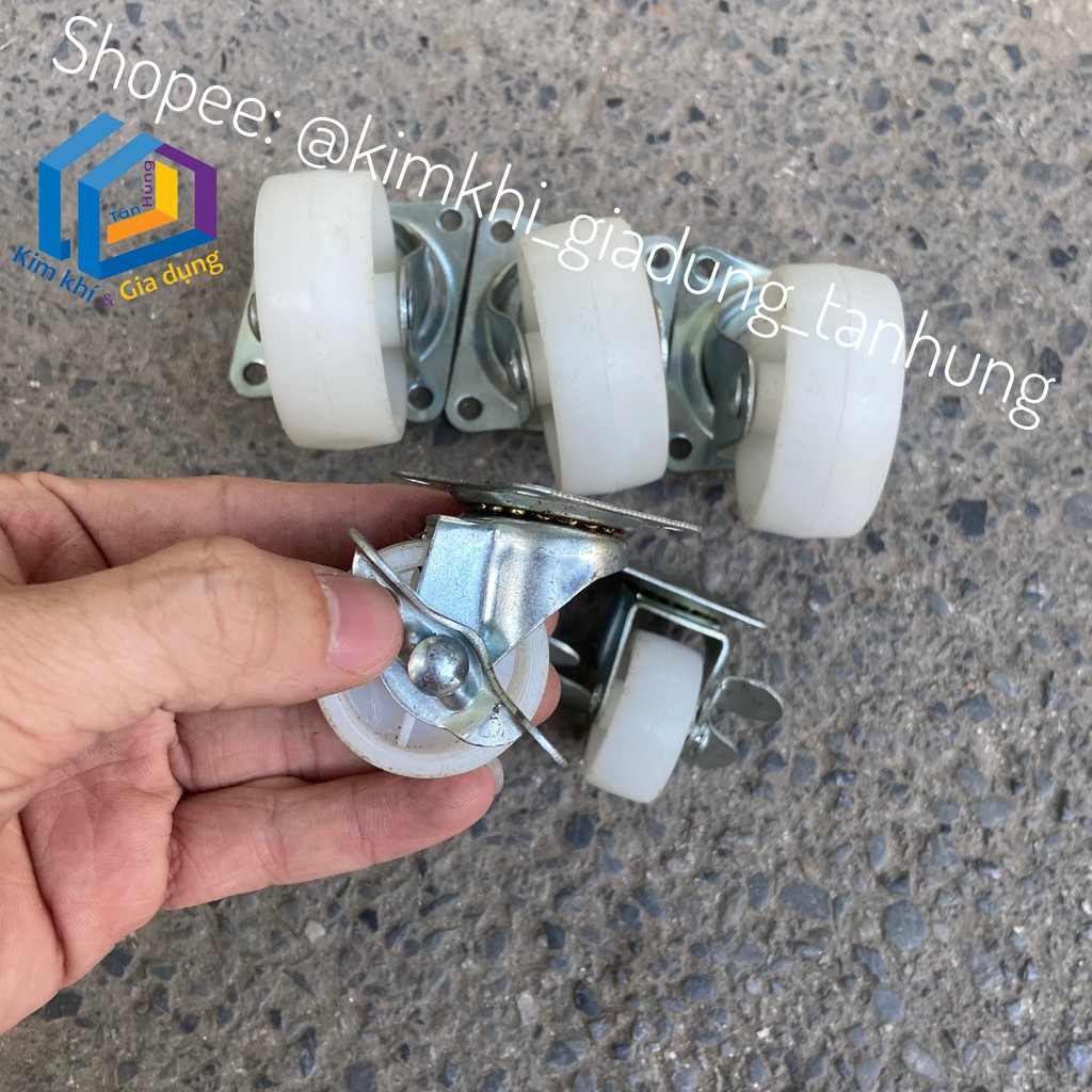Bánh xe kéo hàng nhựa trắng các loại 5cm 6cm 7cm 8cm - Dùng làm xe kéo, chân bàn ghế, chân tủ