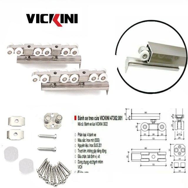 Giới thiệu sản phẩm Bánh xe lùa VICKINI 47302.001 (100kg)Bánh xe lùa VICKINI 47302