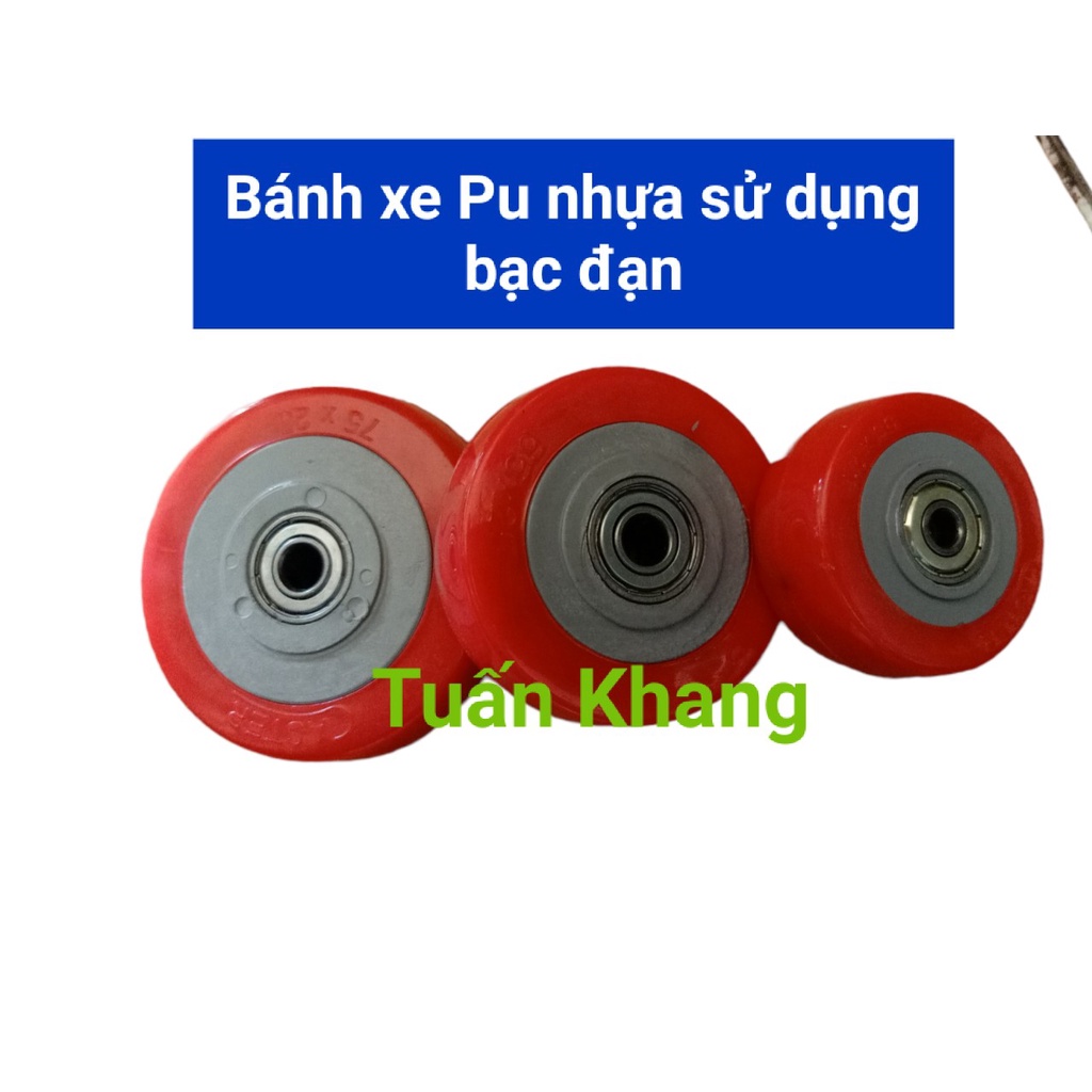 Bánh xe nhựa pu có bạc đạn kích thước 50mm, 65mm, 75mm - bánh xe tuấn khang