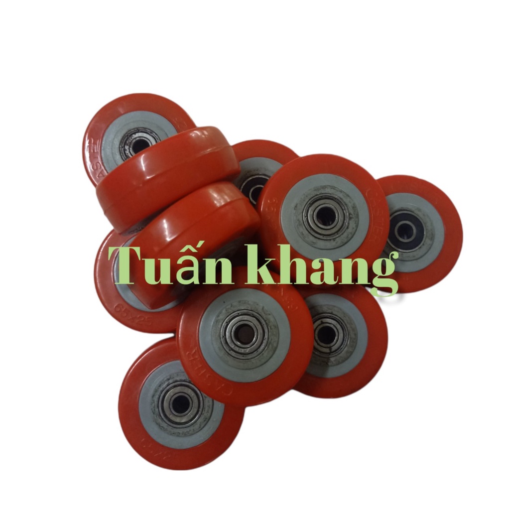 bánh xe 65x25 pu đỏ có bạc đạn sử dugj trục 8mm ( 8li )