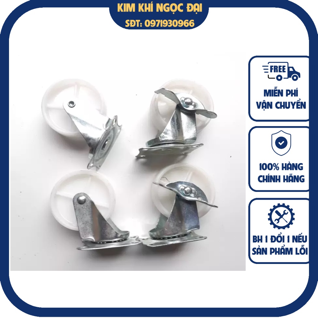Bánh xe nhựa trắng các size đường kính bánh 4cm. 5cm, 7cmgồm loại có hãm, loại không có hãm phanh nhé, ở đây tính theo đơn vị 1 cái bánh