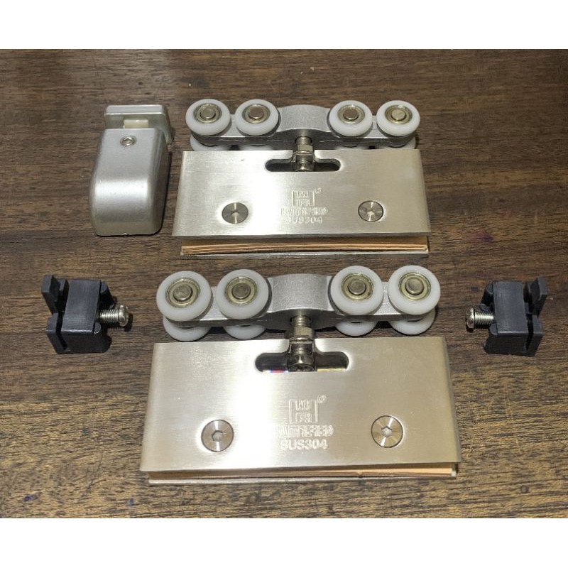 Bánh xe treo cửa kính cường lực HMRBao gồm đầy đủ phụ kiện như hình chụp