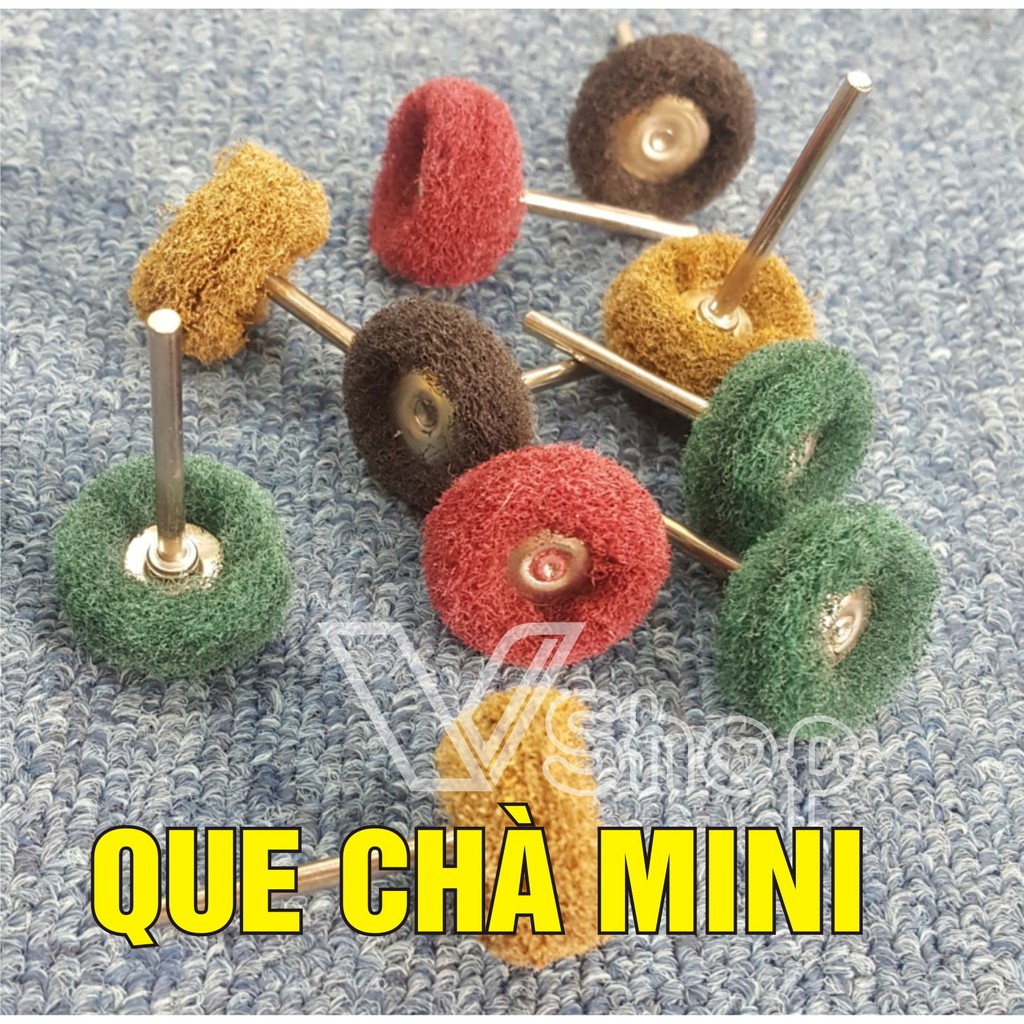 Ngoài ra còn có bộ que chà, dùng cho máy mài mini cầm tay, cấu tạo giống như bánh xe sợi, nhưng nhỏ hơn nhiều, nhằm chà những chỗ nhỏ, hẹp, của sản phẩm mà bánh xe sợi nói trên không thể tiếp cận. bộ que chà mini này gồm 10 cái.