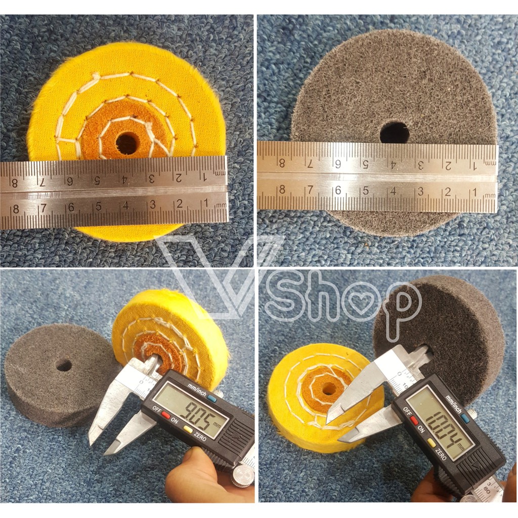Để đánh bóng sản phẩm, ta dùng bánh xe vải, màu vàng. Sợi vải mịn, giúp chùi sạch các vết bẩn, vết ố, làm láng bóng bề mặt sản phẩm.