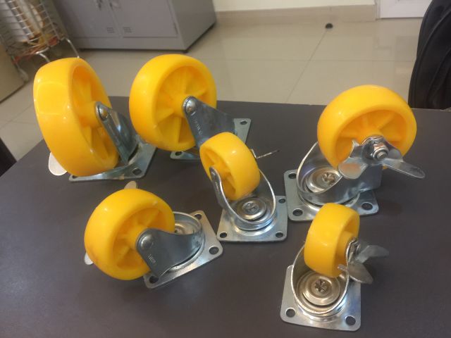 Giới thiệu BÁNH XE VÀNG 5P, bánh xe đẩy hàng, làm tủ kệ, Bánh xe nhựa cứng xoay 360°