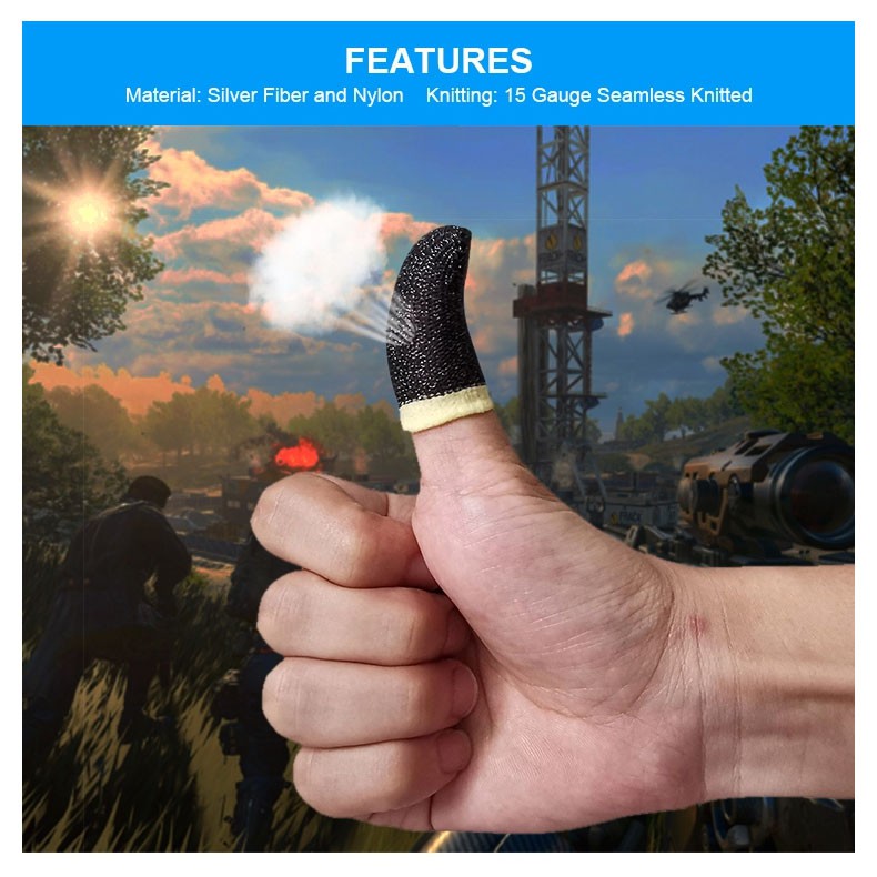 Mồ hôi tay khiến bạn gặp không ít phiền toái khi chơi Game Mobile?Vấn đề sẽ được giải quyết với bộ SWEAT PROOF FINGER, thiết kế với chất liệu đặc biệt để có thể dẫn truyền cảm ứng theo cơ chế như ngón tay người, với công nghệ chống trượt Anti-slip trong sợi vải Elastic Fabric dễ dàng co giãn tạo sự thoải mái khi trang bị.