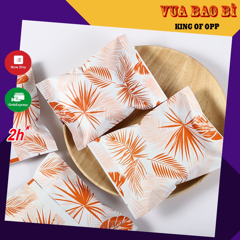 Bao bì đựng trà, bánh kẹo hoạ tiết lá màu cam, túi đựng kẹo hàn nhiệt- BB32 - VUA BAO BÌ