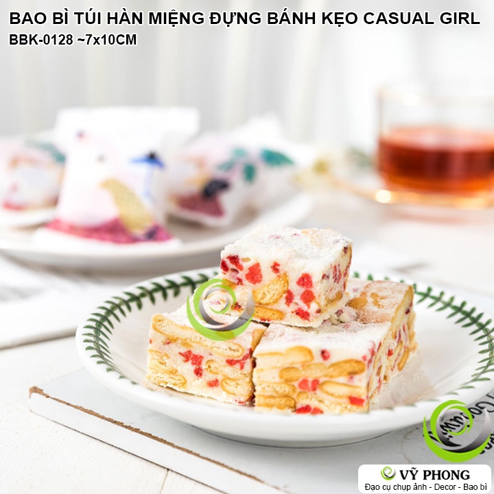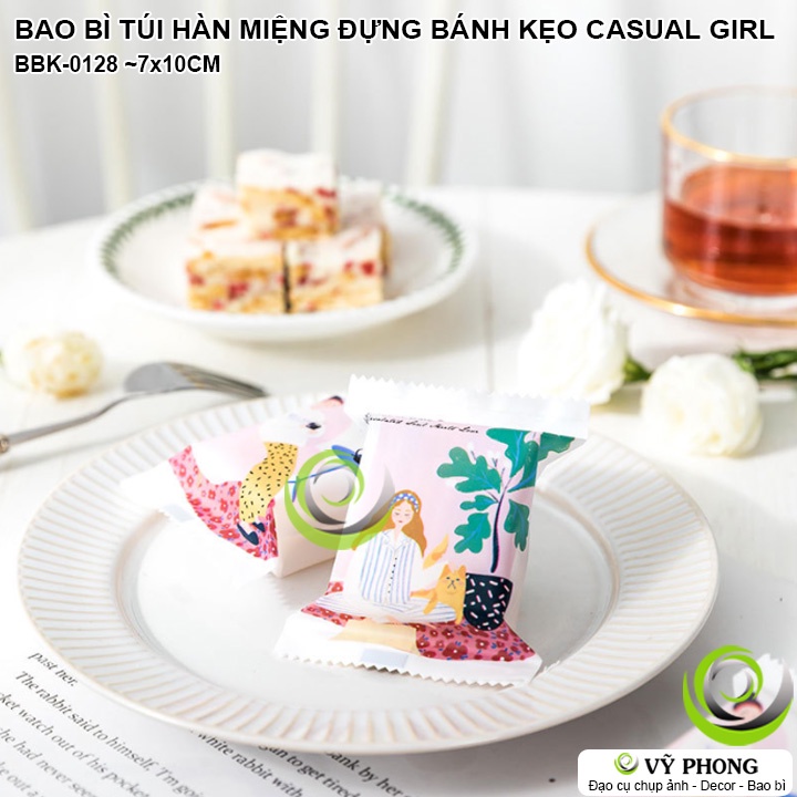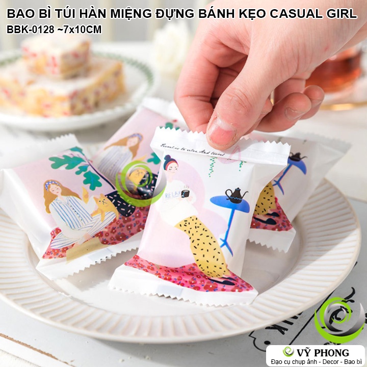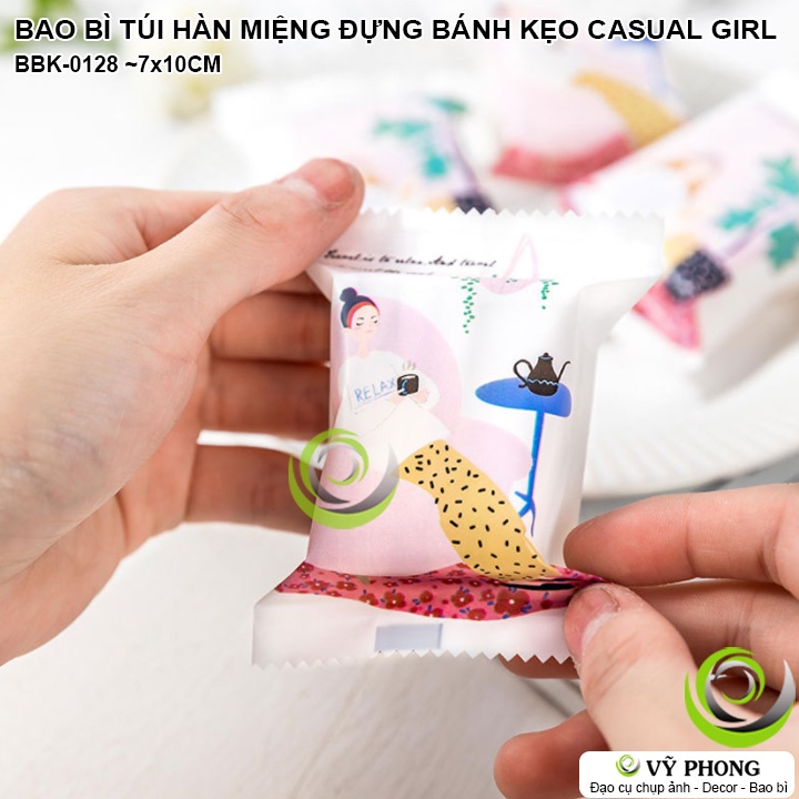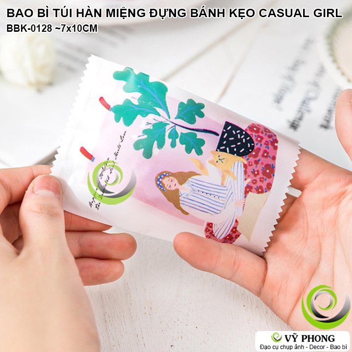 BAO BÌ TÚI HÀN MIỆNG 7x10CM ĐỰNG BÁNH KẸO LỄ TẾT IN HÌNH CÔ GÁI CASUAL LÀM QUÀ TẶNG CÁC DỊP XUÂN NĂM MỚI BBK-0128