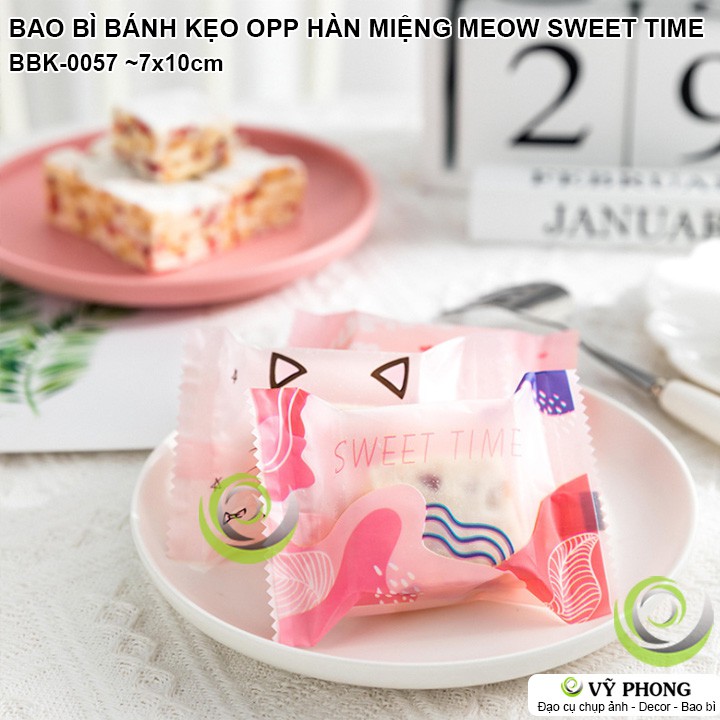 Tên sản phẩm : BAO BÌ TÚI HÀN MIỆNG NHỰA OPP ĐỰNG BÁNH KẸO 7x10cm ĐỰNG COOKIE ĐẬU PHỘNG PHONG CÁCH HÀN QUỐC MEOW SWEET TIMEMã sản phẩm : BBK-0057